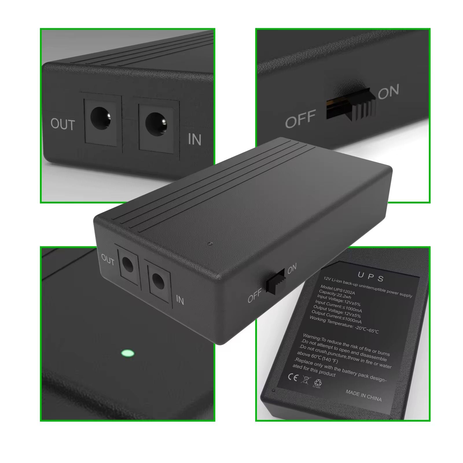Dispositivo de respaldo eléctrico portátil de 12V ideal para routers, cámaras de seguridad, switches, módems y otros equipos electrónicos.